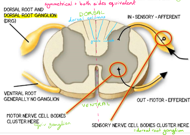 pathways in specific places in spinal cord - injury certain place will therefore cause certain symptoms, useful for diagnosis
