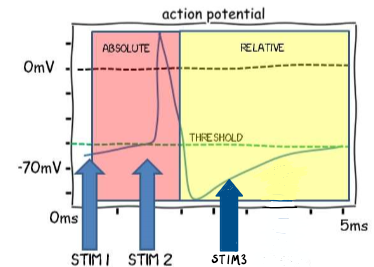 * after a pot harder gen another as mem more neg + polarised + some Na+ channs inactivated