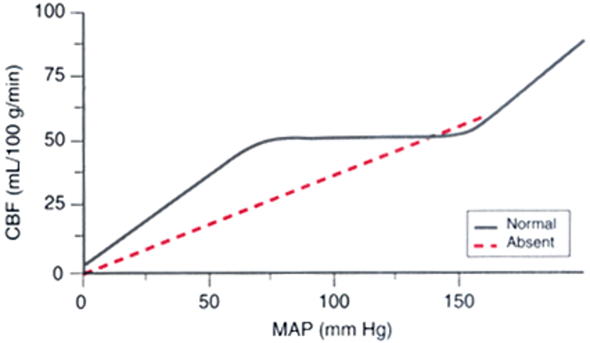 CBF can be signifantly decreased due to lack of autoregulation