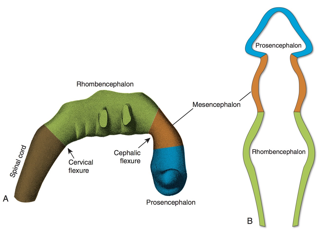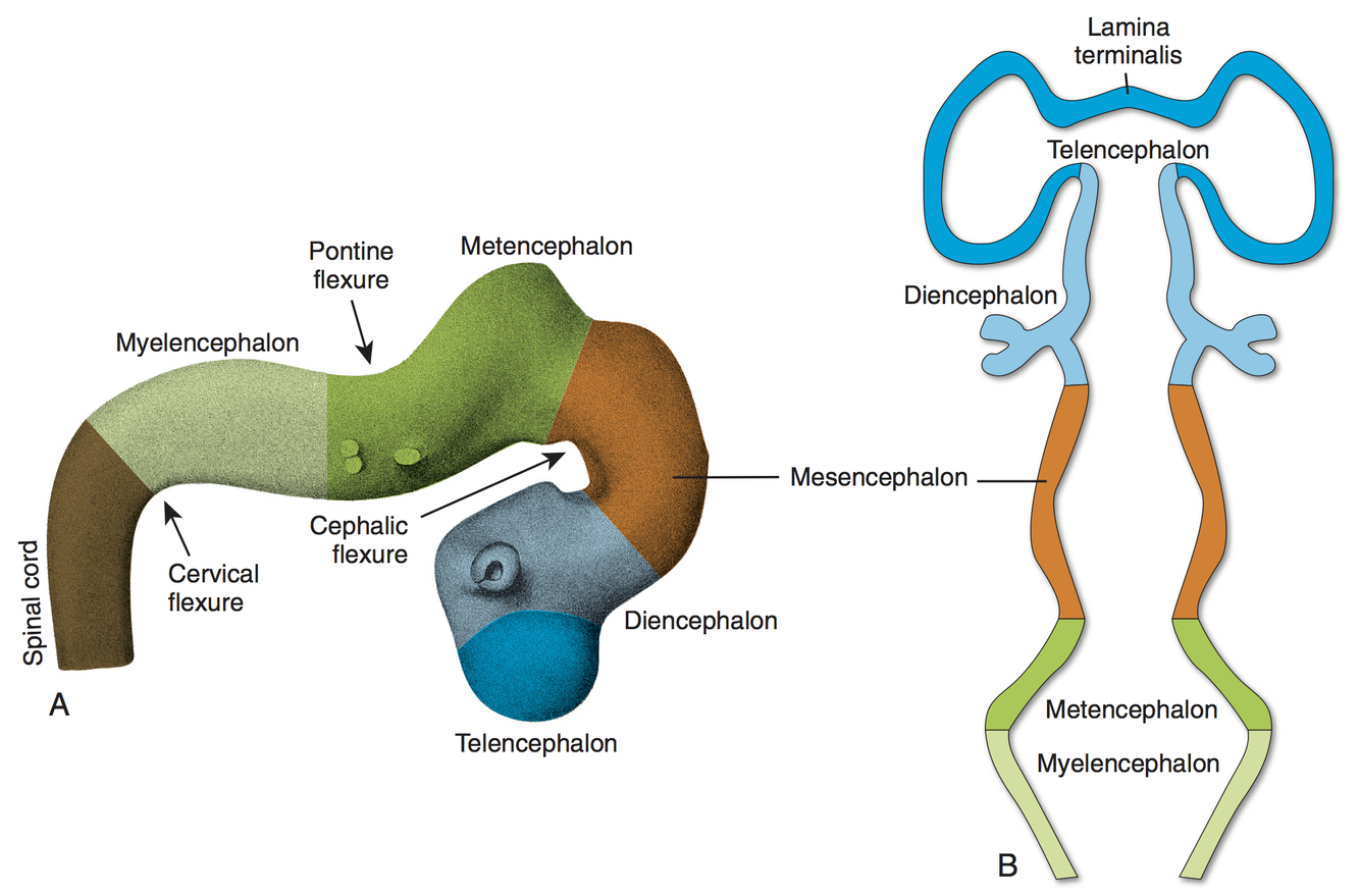 Two flexures present in the neural tube at this stage: