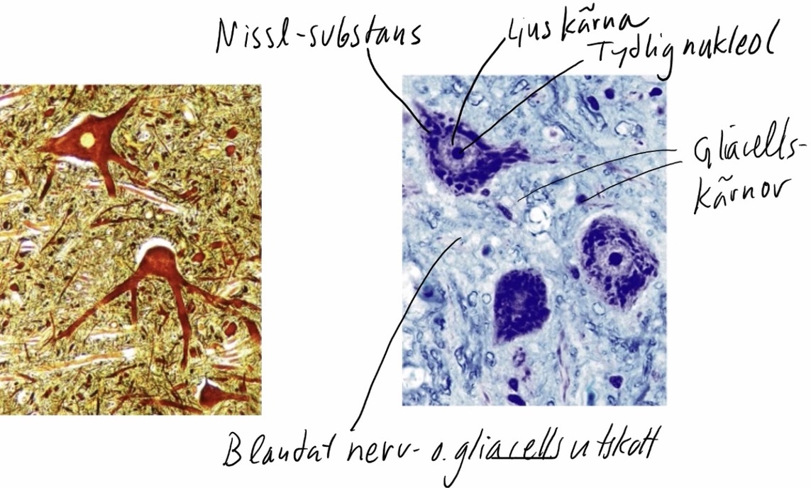 Granuler i nervceller som innehåller mycket RER för proteinsyntes