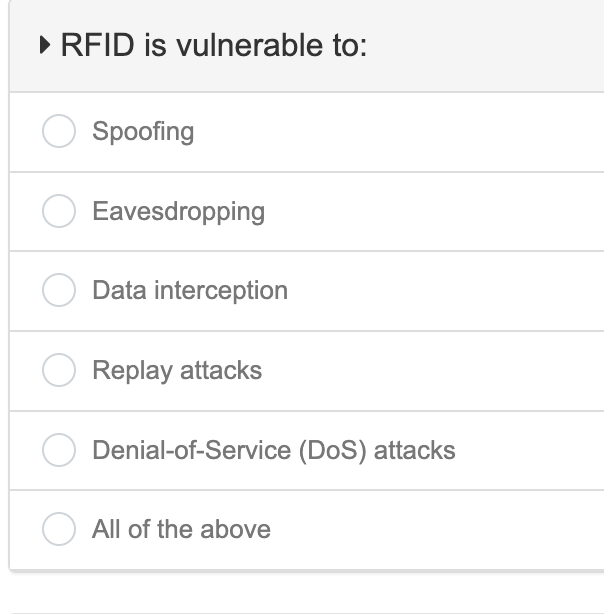 Denial-of-Service (DoS) attacks: attackers can disrupt RFID systems by flooding them with excessive requests or interference.