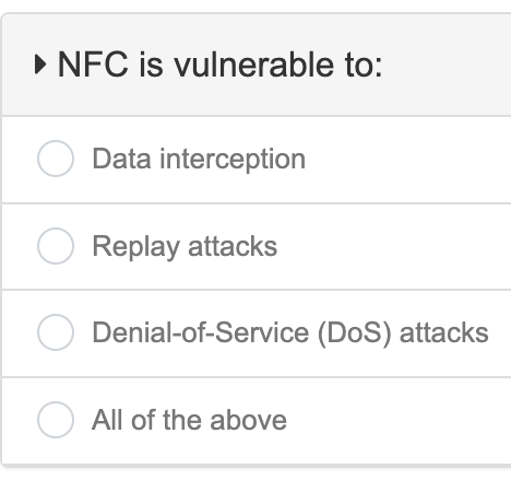 NFC, or Near Field Communication, shares similarities with RFID and is also vulnerable to similar attacks: