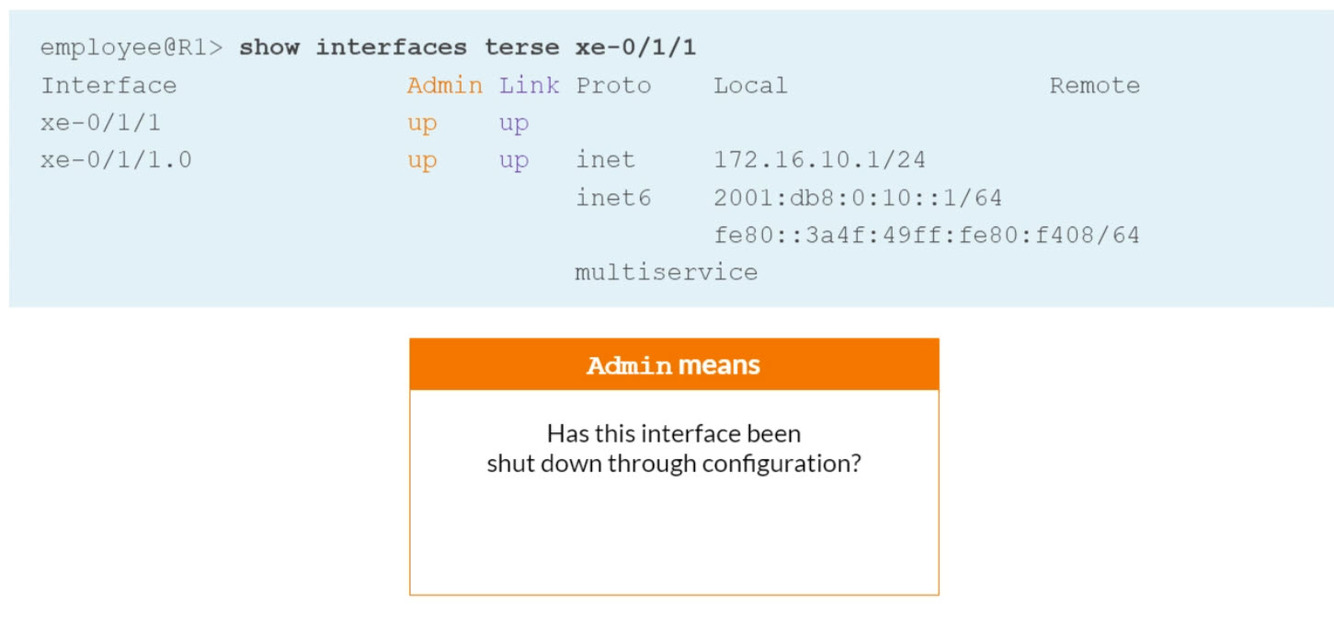 In the ‘show interfaces terse’ command, the ‘Admin’ column displays?