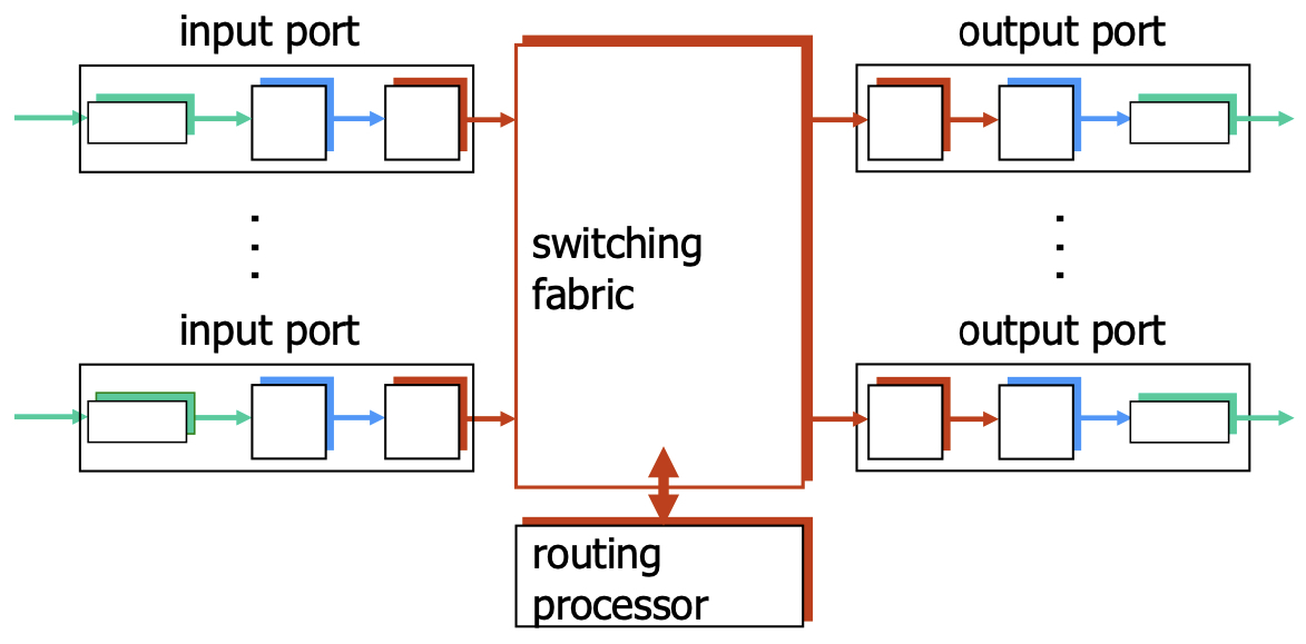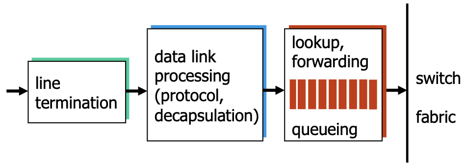 Wenn mehrere Eingänge auf einen Ausgang wollen müssen manche Pakete hinter diesen Warten, obwohl ihr Ausgang eigentlich frei wäre