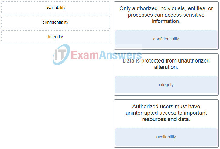 CIA triad: Confidentiality, Integrity, Availability.