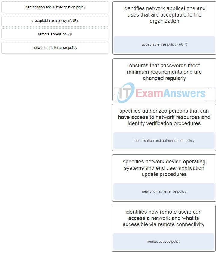 Match the security policy with the description. (Not all options are used.)