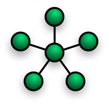 A topology in which every component is linked to the central hub or switch, and not to each other (unless in a hybrid).