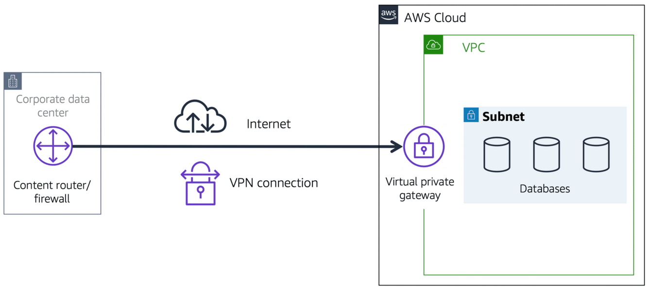 The virtual private gateway is the component that allows protected internet traffic to enter into the VPC. Even though your connection to the coffee shop has extra protection, traffic jams are possible because you’re using the same road as other customers.
