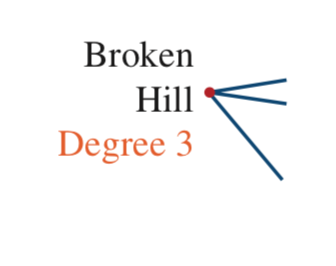 The degree of a vertex is the number of edges that are connected to it. The degree of the Broken Hill vertex is 3 because there are three edges attached to the vertex.
