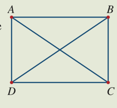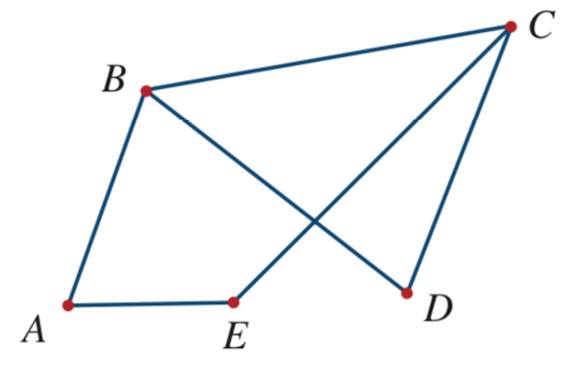 A traversable graph has a trail that includes every edge. The trail A–B–C–A–C is one example.