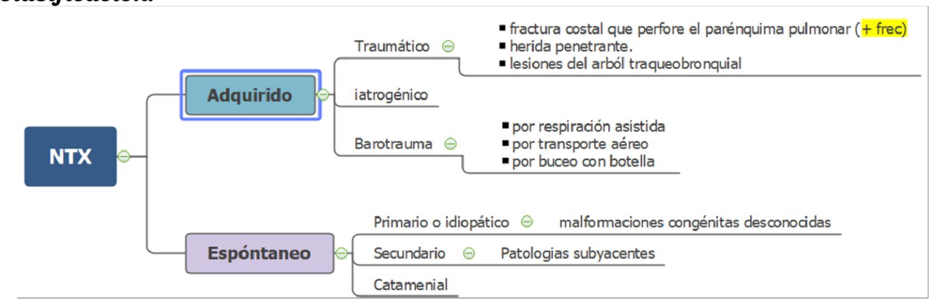 * Neumotórax (abierto o cerrado; simple o a tensión)