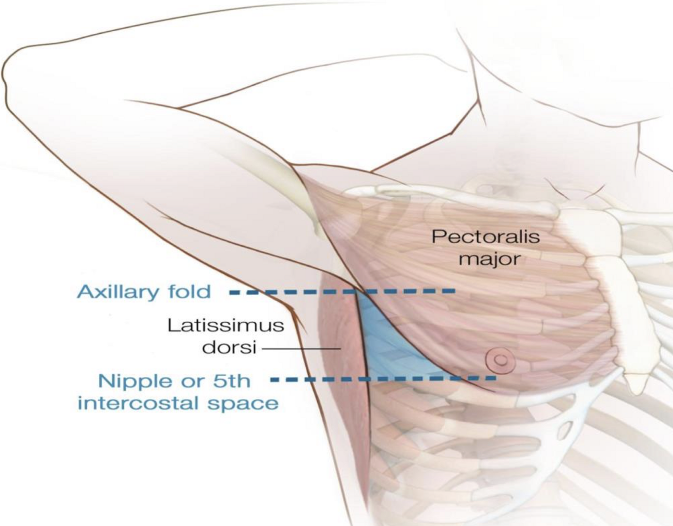 La técnica implica introducir un tubo dentro de la cavidad pleural a través de un espacio intercostal (EIC) de la pared torácica, típicamente a nivel del cuarto espacio intercostal en la línea axilar media, en un área denominada triangulo de seguridad.