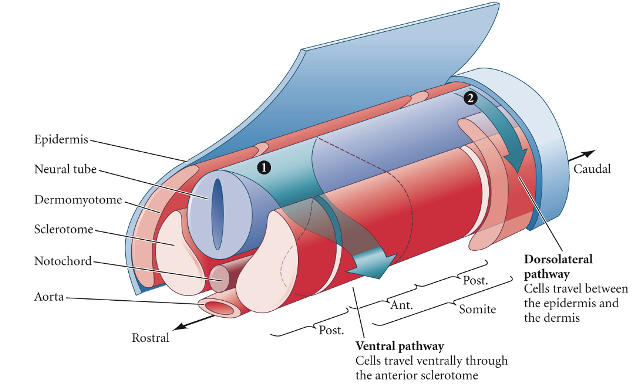 Dorsolateral: Cell travel between the epidermis and the dermis