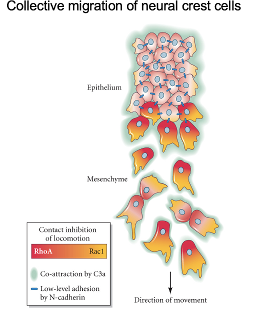 Collectively migrating neural crest cells secrete an attractive signal (Complement 3a, C3a) to ensure that neural crest cells continually grow towards each other