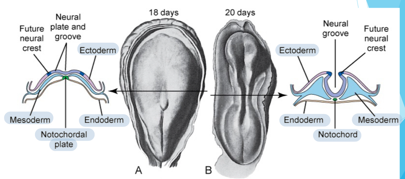 -neural folds join in the midline to form this structure and fusion of the folds proceeds cranially and caudally, eventually leaving a cranial and caudal neuropore (open ends)