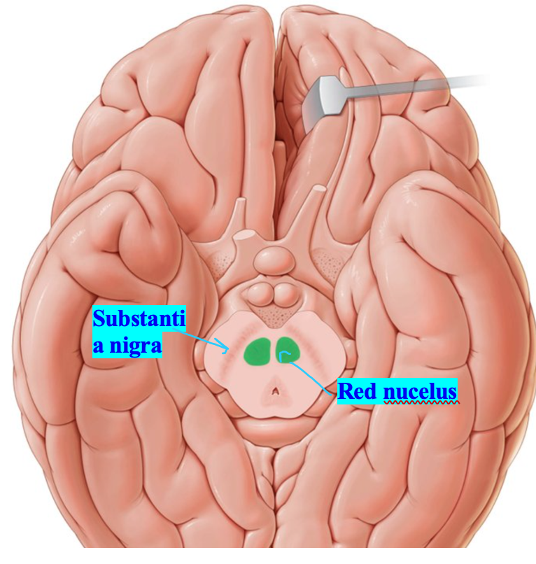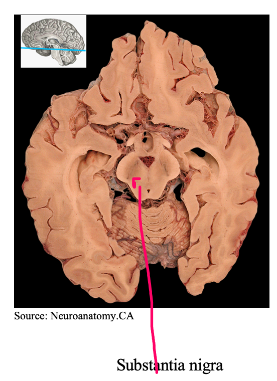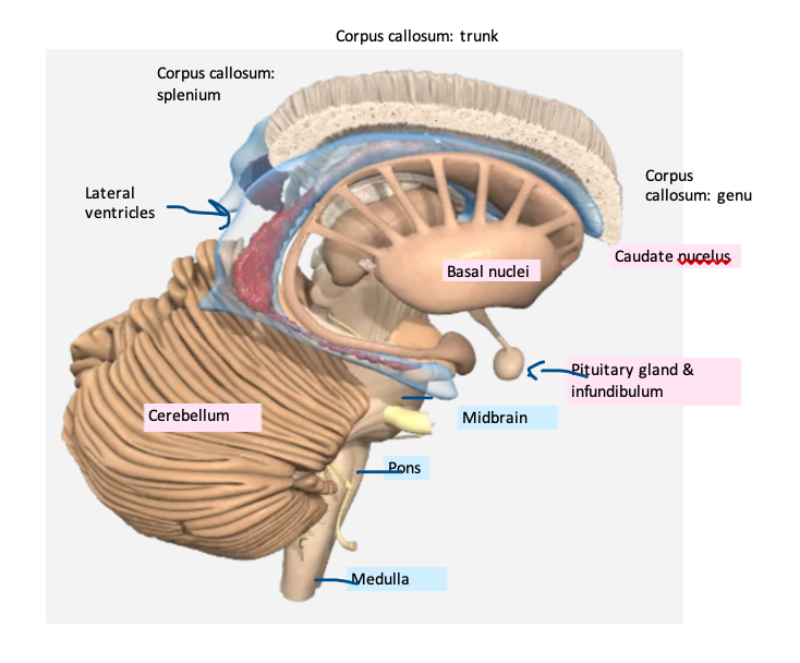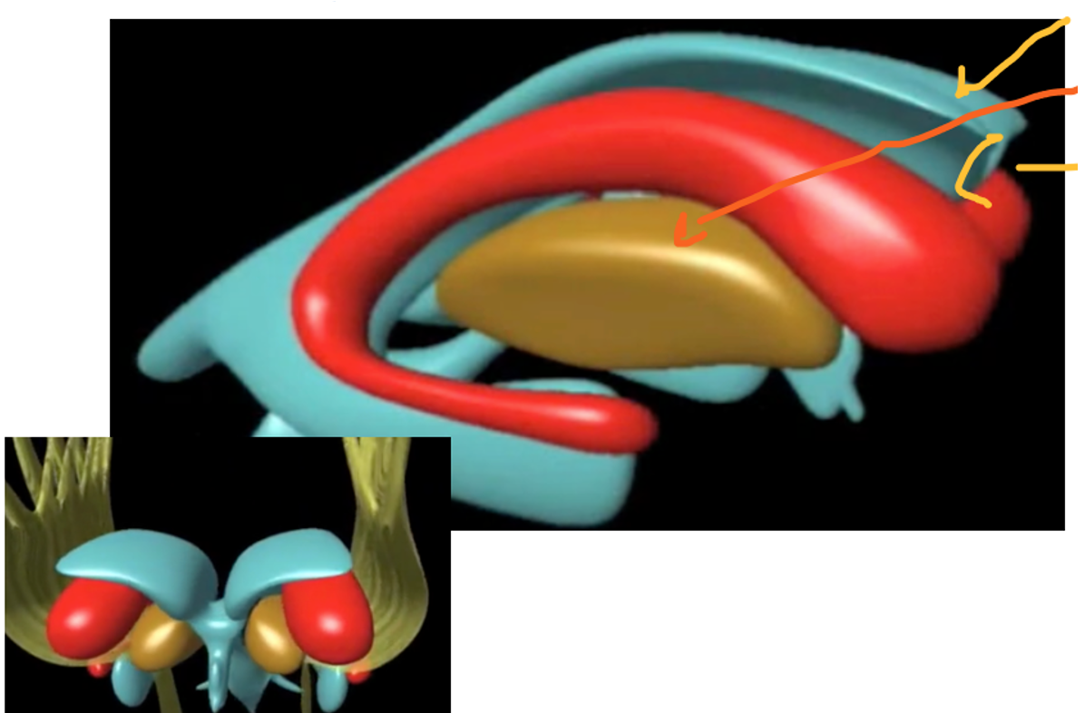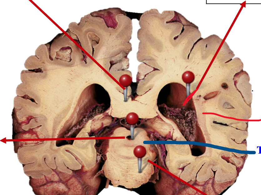 The pinneal gland- part of the epithalamus, posterior to the thalamus
