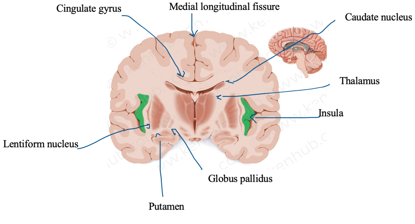 Collection of neuronal cell bodies within the cerebral hemisphere