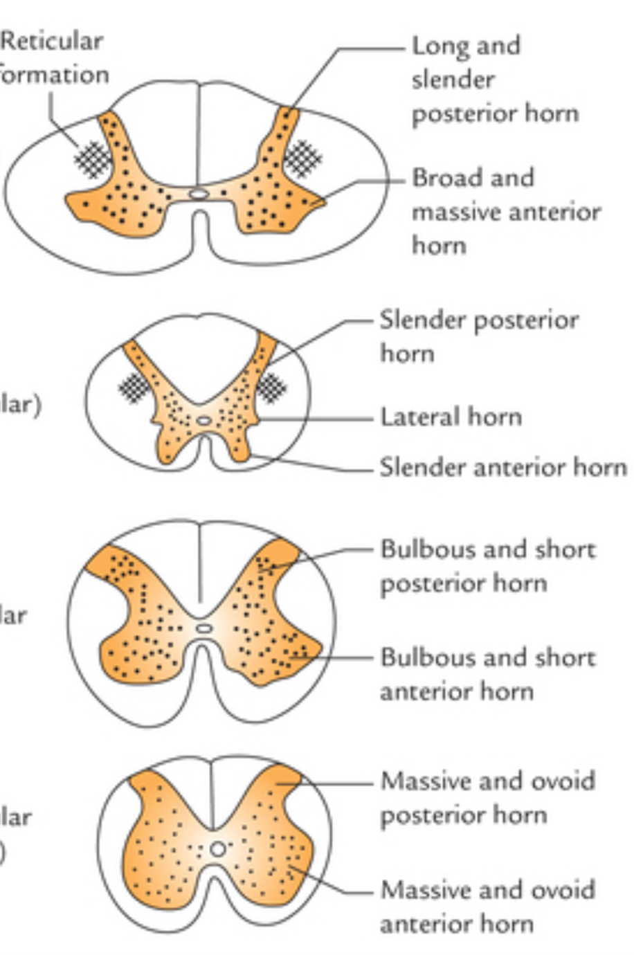 Which part of the spinal cord recieves sensory fibers and which part recieves motor fibers?