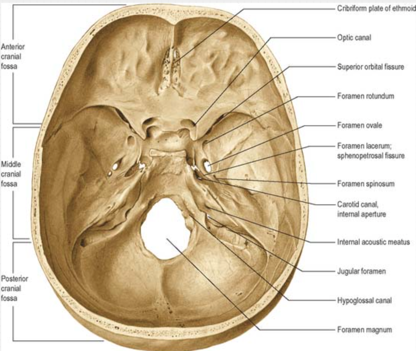 What is the name of the hole in the middle of the spinal cord and what does it contain?