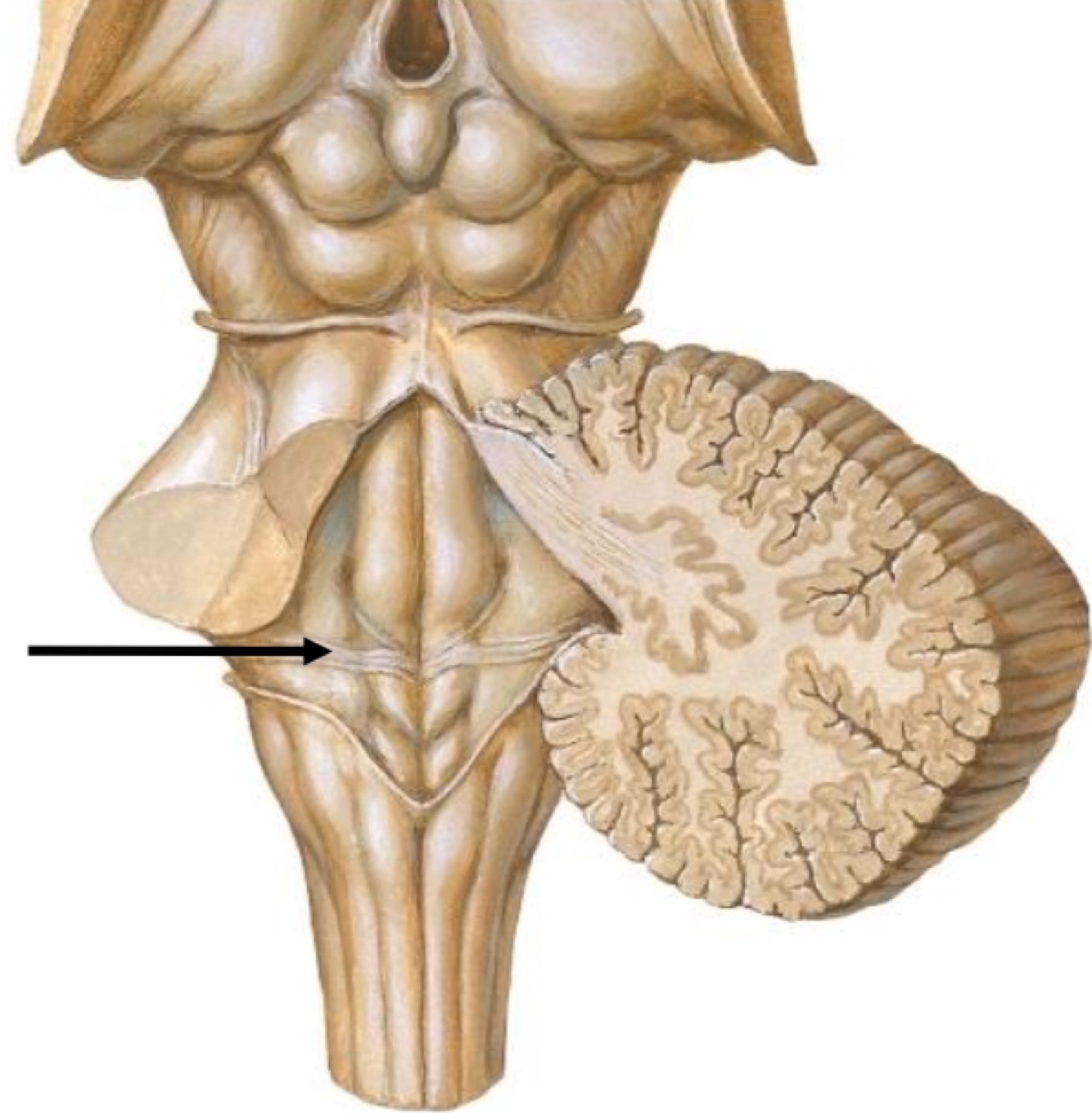 Frontal cortex is medial to brain so frontopontine is medial