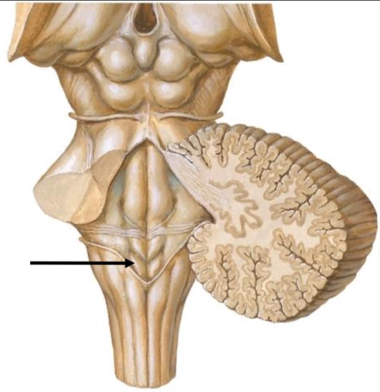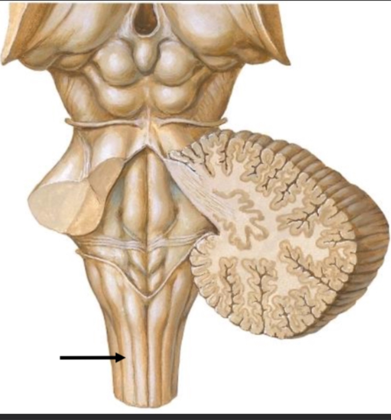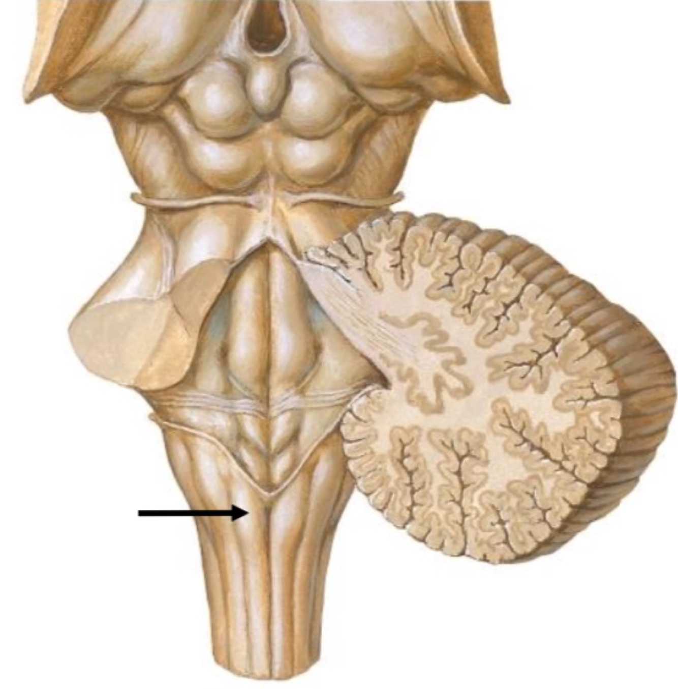 The two pyramids contain the motor fibers that pass from the brain to the medulla oblongata and spinal cord.