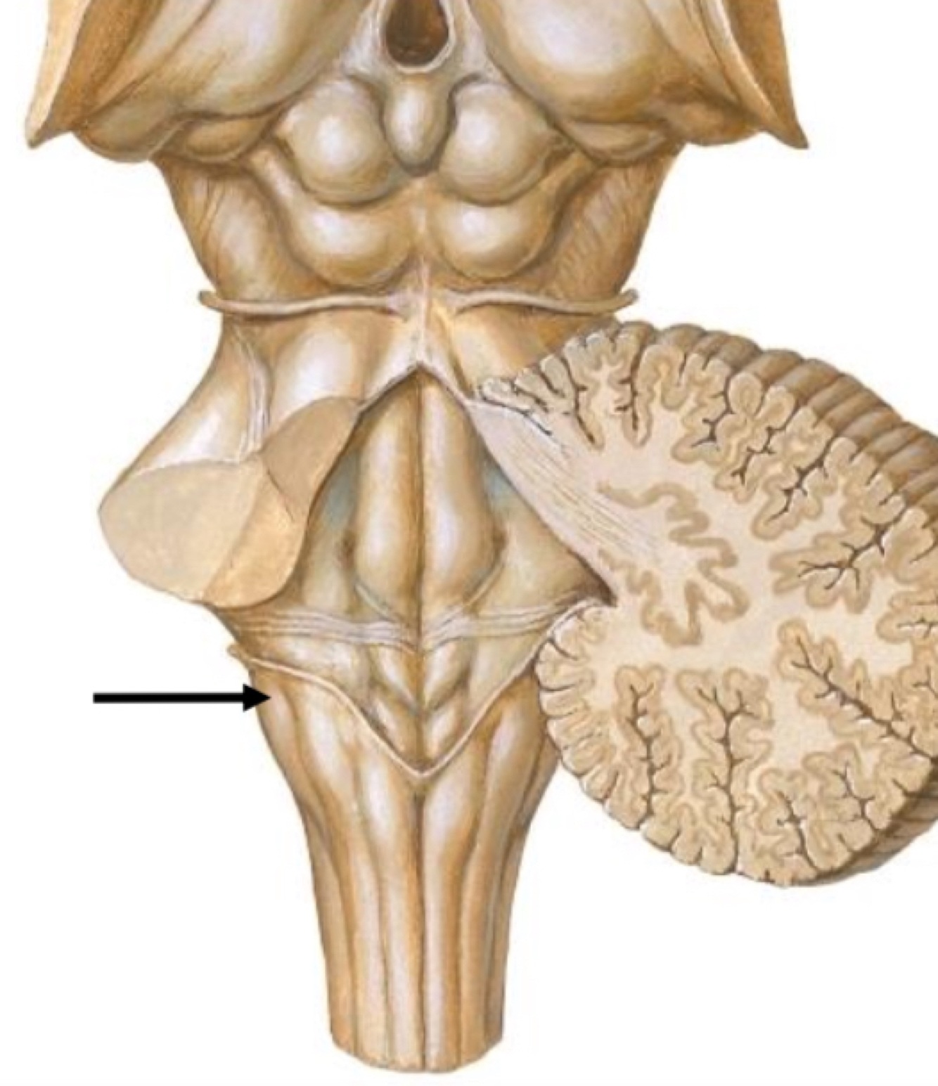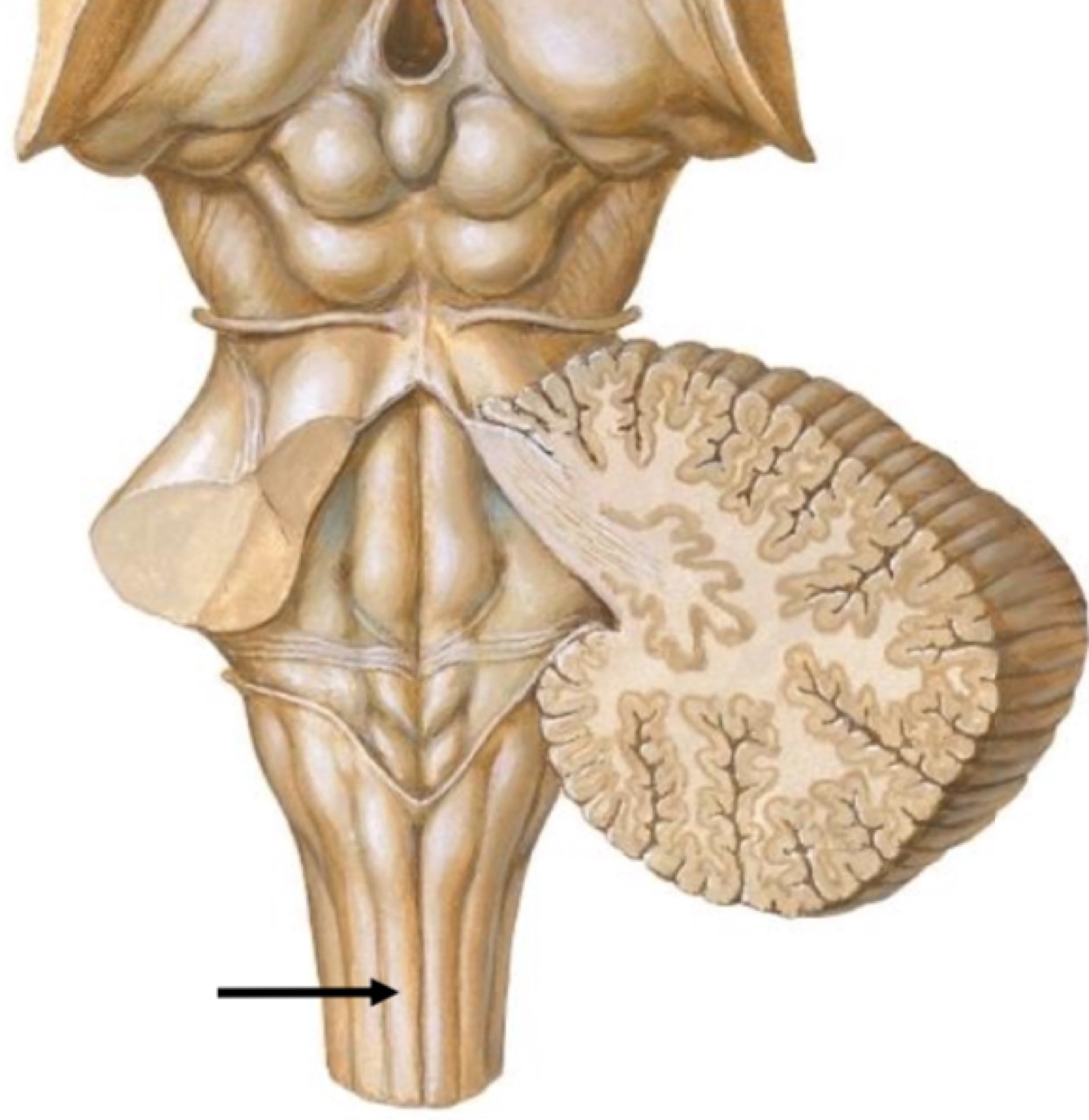 About 90% of these fibers leave the pyramids in successive bundles and decussate (cross over) in the anterior median fissure of the medulla oblongata as the pyramidal decussation or motor decussation.