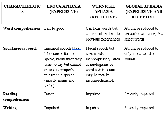 a speech disorder that can be receptive (understanding language) or expressive (speaking language), may be indicated by hesitations and other speech rhythm disturbances, omission of syllables or words, word transposition, circumlocutions, and neologisms.