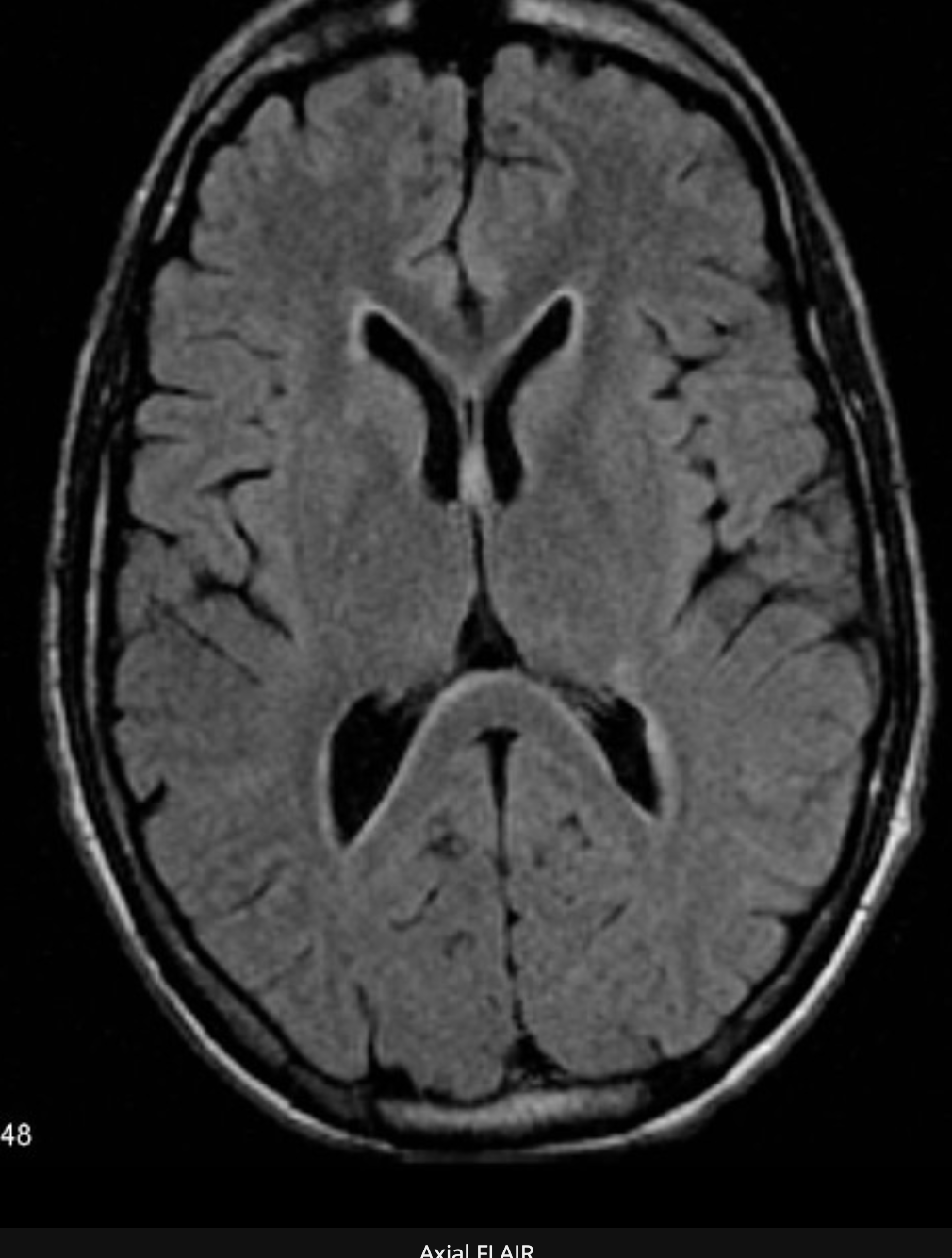 Axial FLAIR image shows striking asymmetric cortical parietal atrophy in a patient with CBD