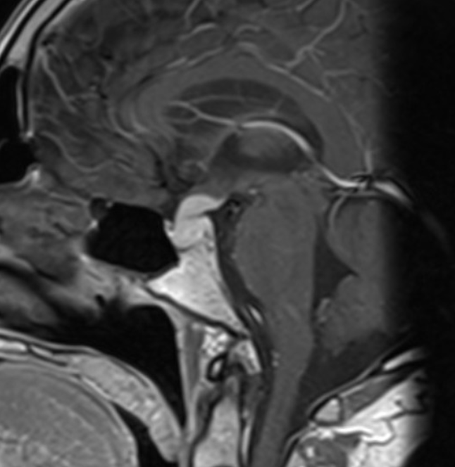 may present as a lobulated hyperattenuating structure anterior to the mid brain