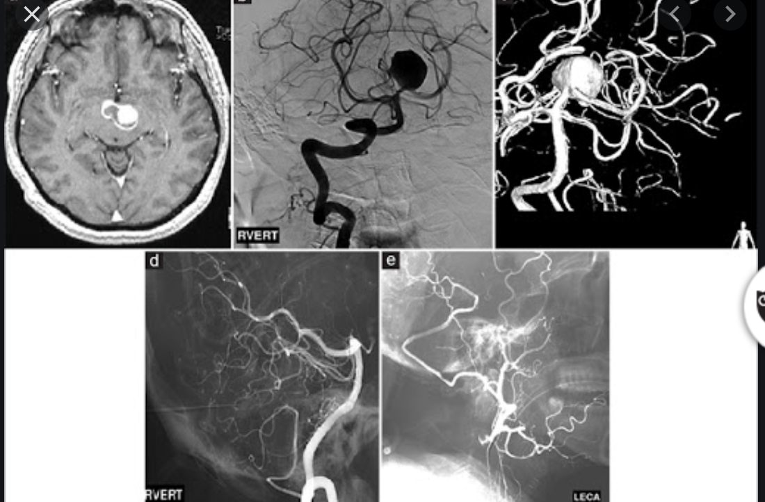 CT angiography (CTA) provides better evaluation of the aneurysm and its relationship to other branches of the basilar artery
