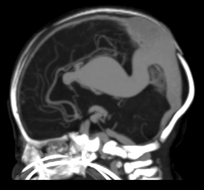 vein of Galen dilatation secondary to high flow parenchymal AVMs draining into this vessel