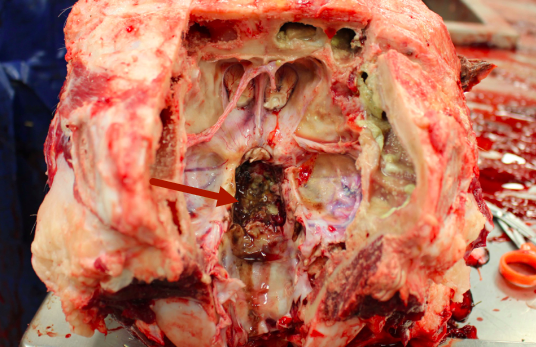 pituitary abscess (probably extension from sinuses, you can see pus there), suppurative sinusitis