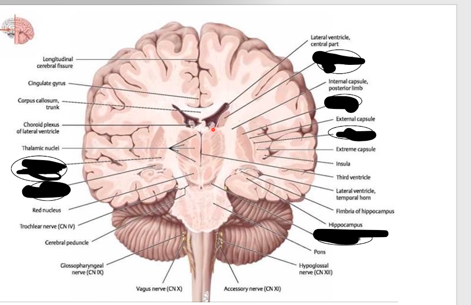 subcorticol nuclear masees of grey matter which are inferior to the cerebral part of the hemisphere, lateral to the thalamus