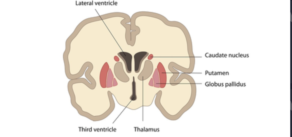 Neostriatum/striatum = caudate nucleus + putamen (functionally similar)