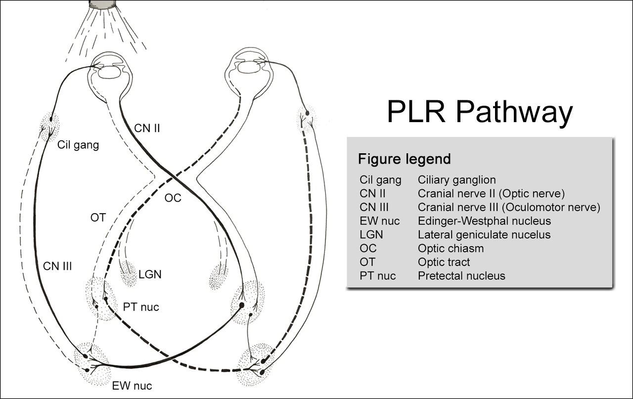 pupillary reflex = CN 2 and 3 (also palpebral fissure)