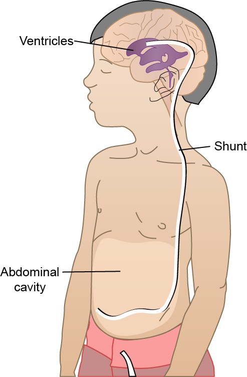 Surgery to drain the fluid by inserting a shunt that gets drained into the abdominal cavity.