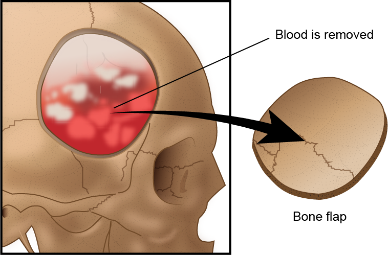A surgery of the brain to remove blood or a tumor.