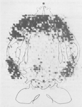 Dorsal brain scan, region of increased activity in left cerebellar region