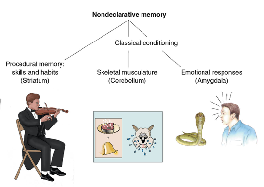 What are the different types of non-declarative memory?
