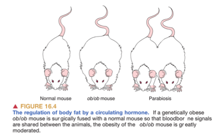 Explain how the parabiosis experiment proved that hormones in the blood are able to regulate bodyweight