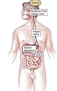 As well as the long-term regulation of feeding provided by the hypothalamus there is also short-term regulation of feeding (satiety or feeling full) What are the 3 stages of satiety?
