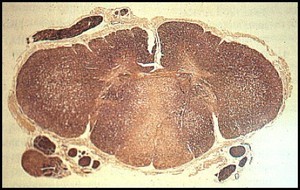 - Axon is cut in half before it can regenerate the myelin sheath (See chronic plaque on front)
