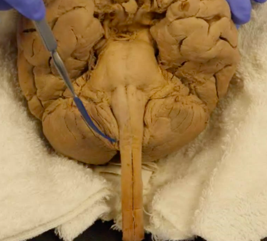 Cerebral peduncle of midbrain (one on each side)