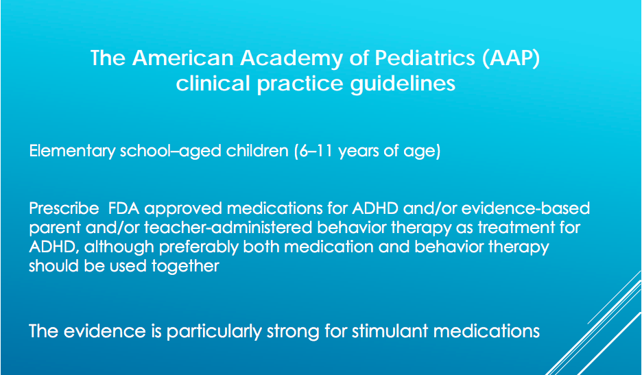 What are the clinical practice guidelines for treating elementary school-aged children (6-11 years of age) with ADHD?