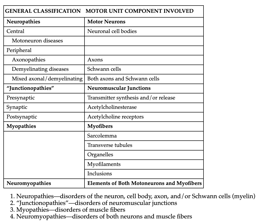 Neuropathies, junctionopathies, myopathies, neuromyopathies
