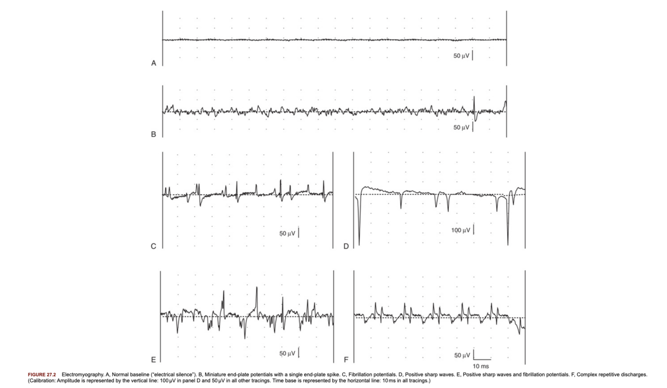 Electromyography - detection of electrical activity recorded from a patient’s muscles.