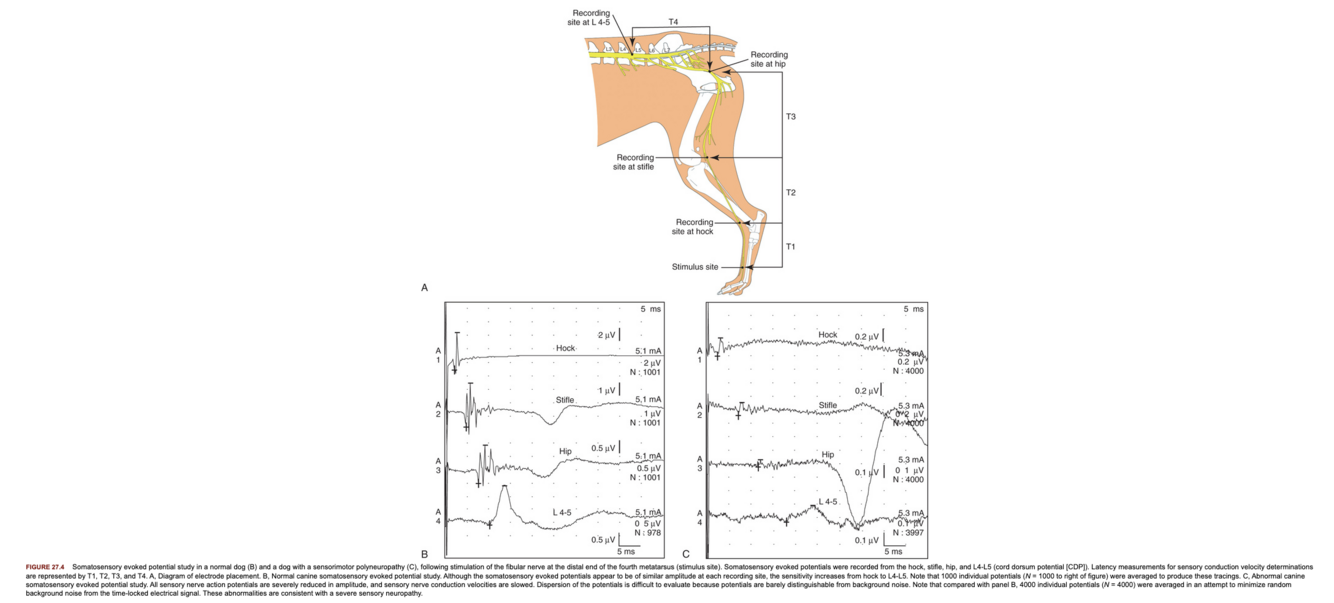 What are somatosensory evoked (or cord dorsum) potentials used for?