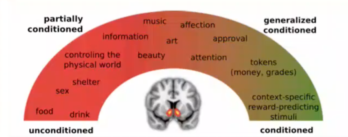 some rewards are in-born while others we learn trough a form of classical conditioning: unconditioned vs conditioned reward