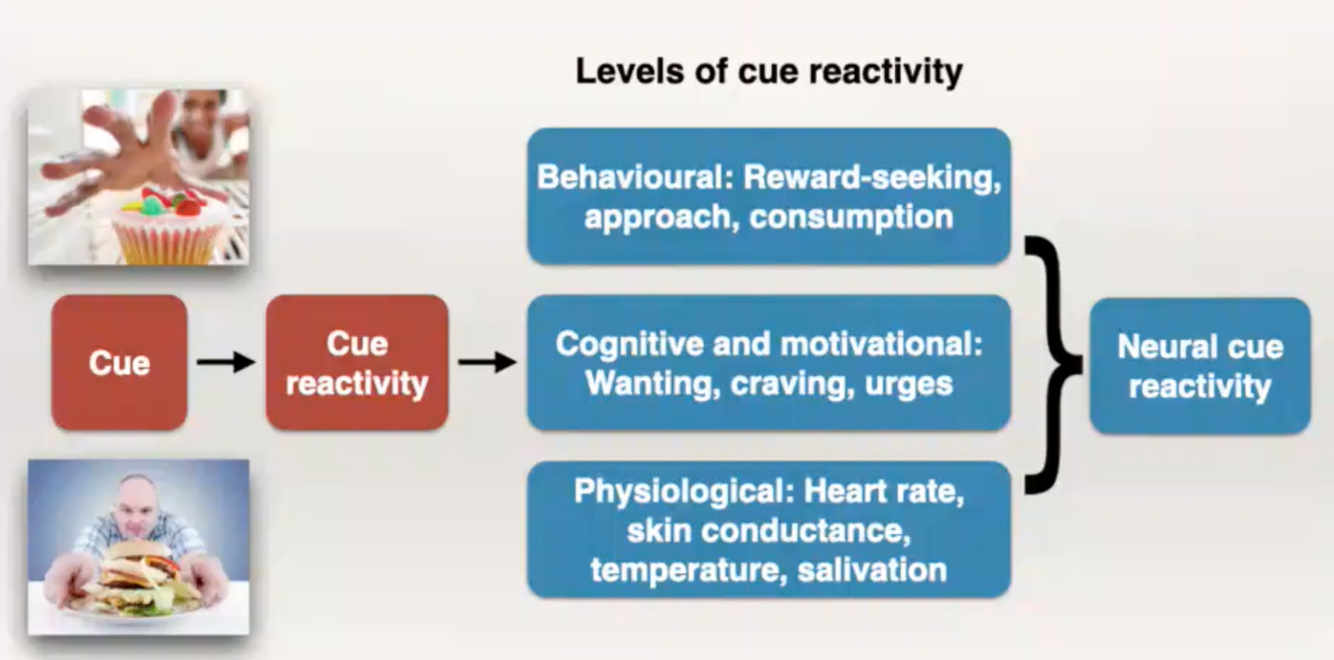 firstly, there is always an interaction between these cues and our physiology, e.g., if you are starving you will have a different reaction to a food cue if you were full